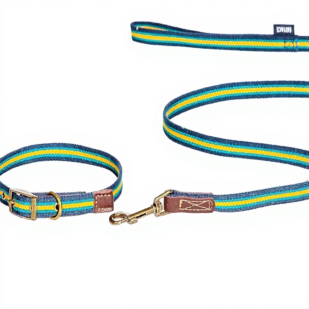 Ce collier pour chien allie esthétique et durabilité grâce à son tissage en cuir véritable et ses boucles métalliques robustes. Le motif rayures bleu et jaune apporte une touche moderne, tandis que la conception sans ormeau garantit un confort optimal pour votre animal.
