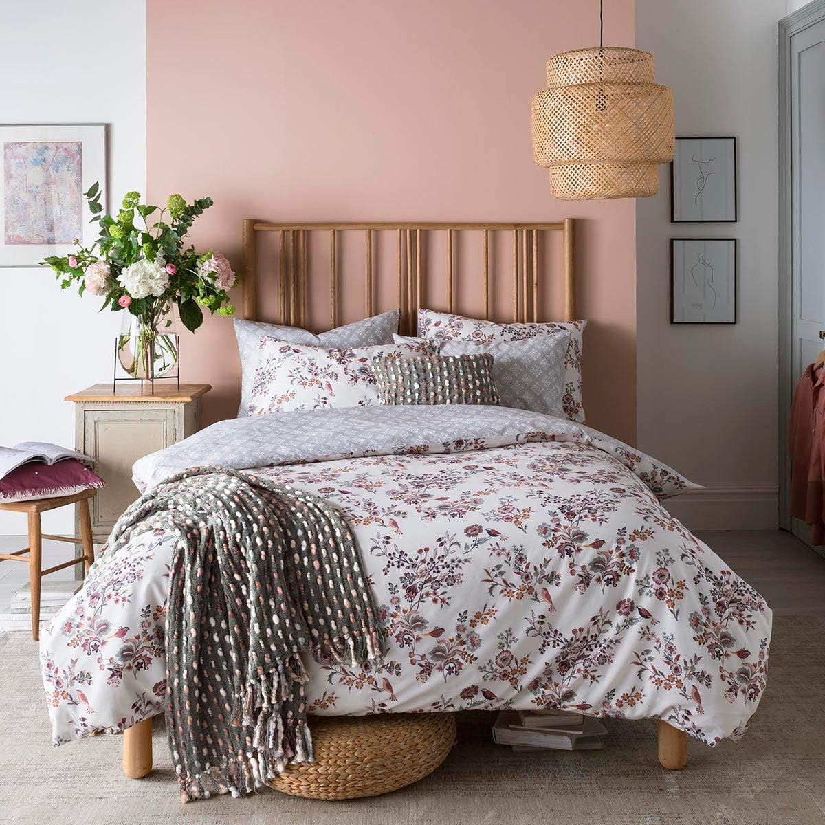 - Motif floral et oiseaux pour un style décoratif et apaisant